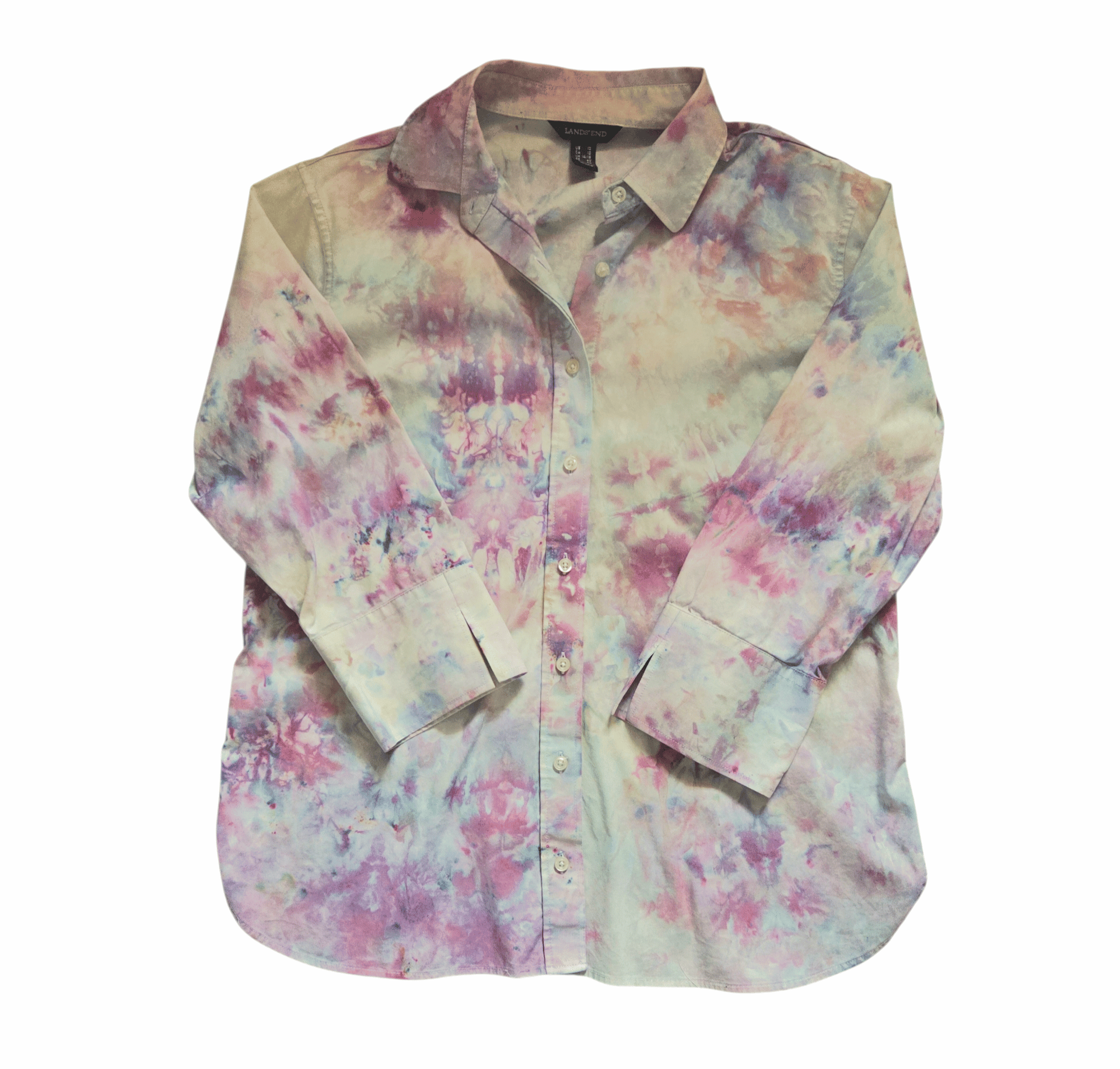 ​Step into a canvas with this ice dyed Button-Down. This isn't just tie-dye; it’s a fluid, ethereal blend of soft magentas, sky blues that flows across the fabric like ink in water.