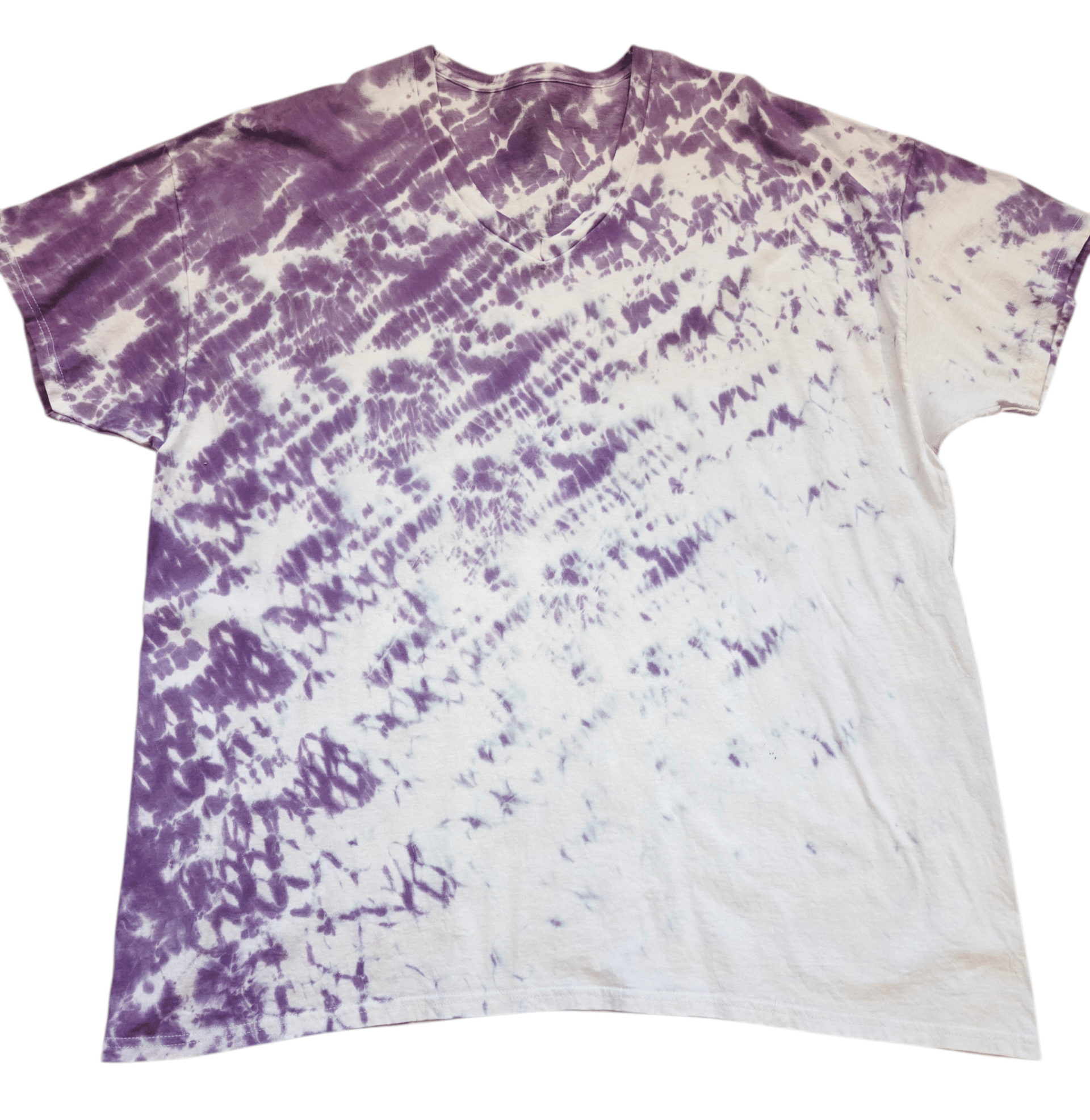 one-of-a-kind purple tie-dye v-neck. Combining artistic flair with a comfortable, relaxed fit, this shirt is perfect for those who want to stand out effortlessly.