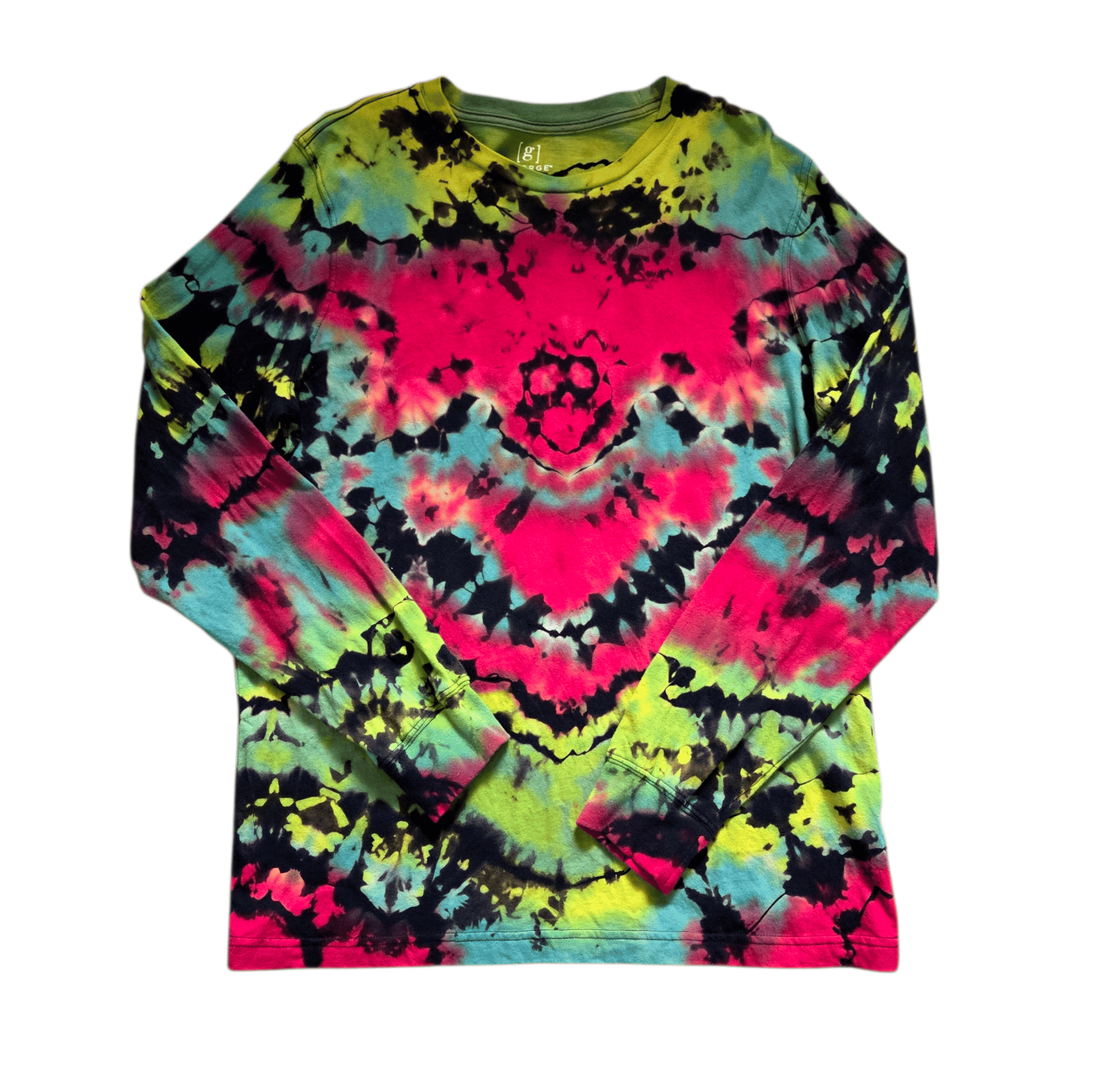 I took the traditional tie-dye process and flipped it. Using a precision reverse-dye method, I have layered vibrant neons over a fractured dark base to create a topographical design that can’t be replicated. 100% cotton, 100% unique.