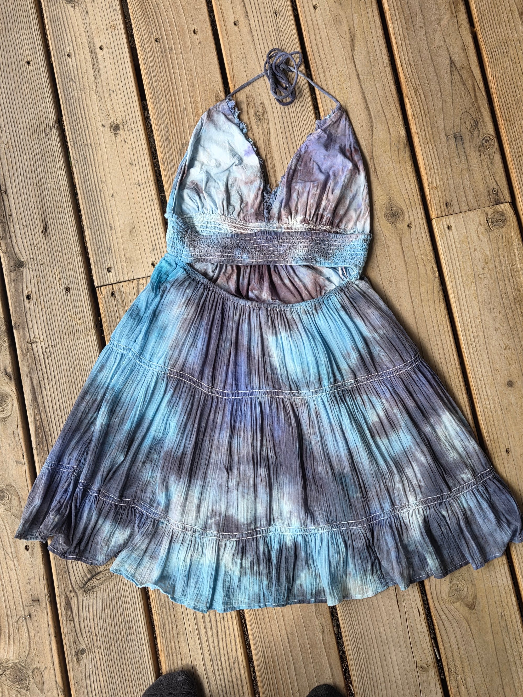 I used a different technique- liquid dye over ice - my usual way of ice dyeing is using powder dye over ice. Wait until the end of video to see how beautiful the open back is! I have sizes L and XL left to dye in this same dress