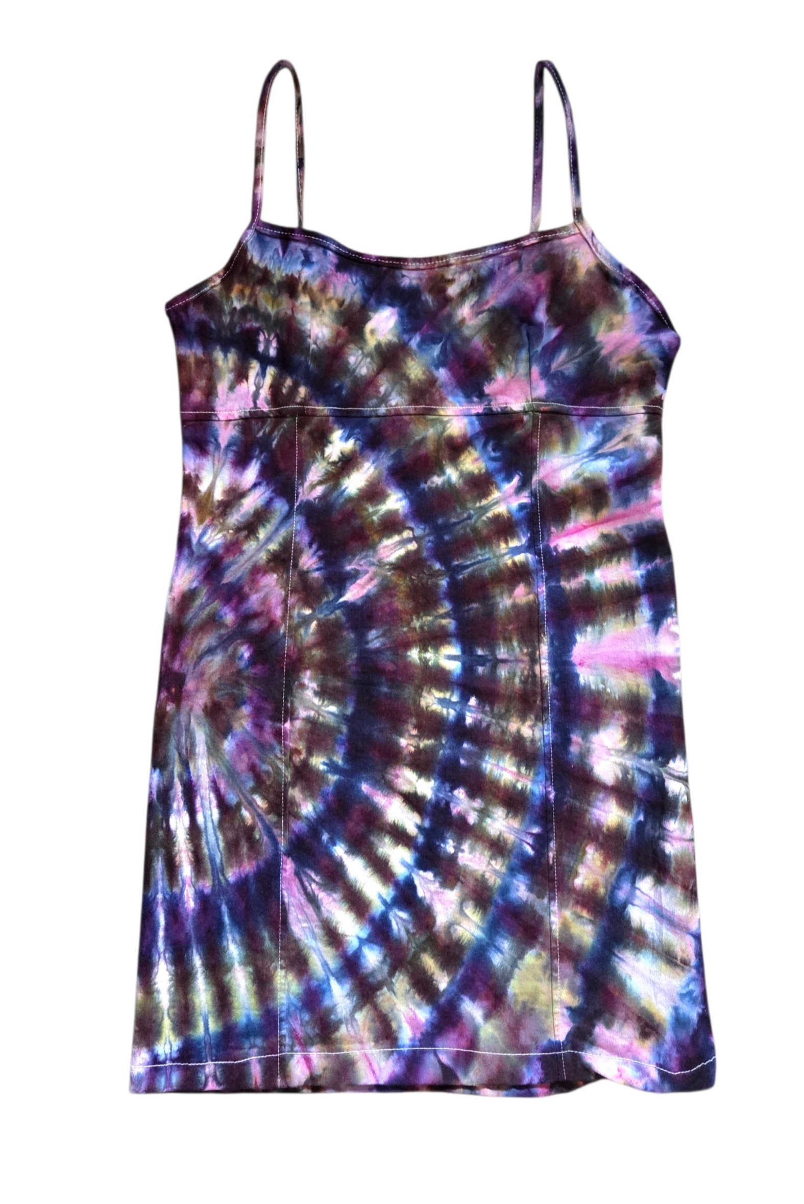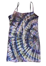 Turn heads in this one-of-a-kind Ice Dyed Fitted Dress. Featuring a mesmerizing, cosmic palette of deep purples, teals, and earthy moss, this piece is where "boho-chic" meets "city-sleek."
